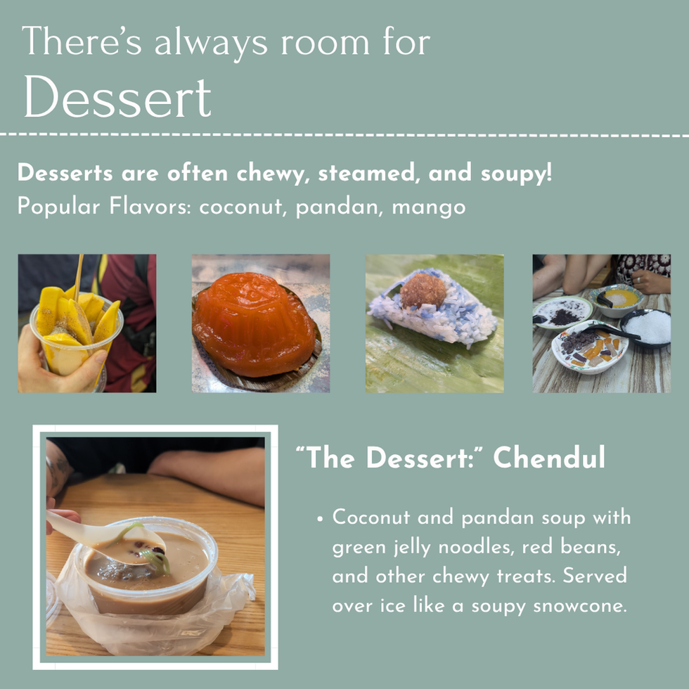 (Megan's favorite: a big plate of Nyonya kuih, a term for all kinds of Malay-Chinese steamed cakes!)