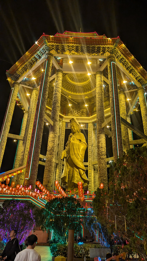 The temple boasted the most unique Buddha images I’ve seen so far, including Fat and Happy Buddhas, and the payoff at the top of the temple is a stunning pagoda that stands at nearly 220 feet tall. Inside the pagoda is a 120-foot tall statue of Guan Yin, the Bodhisattva (female Buddha) of compassion and mercy who hears the cries of the world. This is both the tallest Buddha figure I have seen so far and the first female Buddha featured as a temple’s main icon. In terms of jaw-dropping awe, she really gives Reclining Buddha in Bangkok a run for his money.